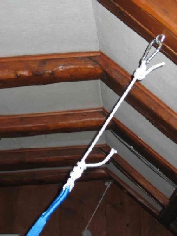 Die Hängematte kann entweder an zwei Haken in einer Mauer oder mit Stricken um Bäume befestigt werden. Karabinerhaken eignen sich dabei besonders gut, weil so die Hängematte jederzeit bequem abgenommen und wieder aufgehängt werden kann.